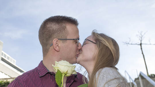 "Es hat alles in unserer Gemeinde angefangen, im Sonntagnachmittag-Programm. Ich kannte ihn kaum und wusste gerade einmal seinen Namen. Ich weiß nicht, warum, aber an diesem Sonntag ist er mir aufgefallen, obwohl er im Auto nur vor mir saß. Dann, eine Woche später, haben wir angefangen, miteinander zu reden. Das war der Tag, an dem alles begann… Und wie das natürlich so ist, schreibt man und schreibt man und es wird immer mehr, bis dann schließlich die roten Herzen dazu kommen. Bis wir schließlich an einem Abend-Gottesdienst nebeneinander saßen (13.05.2017): Er hat mich die ganze Zeit geärgert, indem er mir in die Seite gestochen hat, bis er irgendwann meine Hand genommen hat… Der erste Kuss ließ auch nicht lange auf sich warten. Es war eine Woche später, als wir essen waren und er mir unbedingt "was am Handy zeigen" musste und sich daraufhin neben mich gesetzt hat und mich einfach geküsst hat. Woran ich gerne zurückdenke? An den Moment als er meine Hand genommen hat."