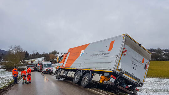 Lkw gerät auf L1134 in gefährliche Schieflage