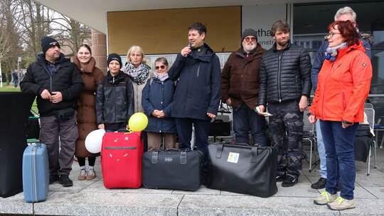 Schömberg. Große Freude herrschte bei Chris Sluiter am Ende der jüngsten Kofferversteigerung im Rahmen des 65. Schömberger Aktionstags. Insgesamt 930 Euro haben Besucherinnen und Besucher bei der kleinen Auktion vor dem Rathaus am Lindenplatz locker gemacht, um einen der vier angebotenen Koffer zu erhalten.
