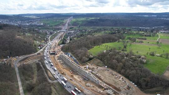 Um das Projekt zügig voranzutreiben, seien täglich bis zu 50 Lkws und 100 Arbeiterinnen und Arbeiter gleichzeitig im Einsatz, um unter anderem Erdmassen zu bewegen. Im Bereich des „Karlsruher Hangs“ in Fahrtrichtung Stuttgart konnte dadurch schon das künftige Höhenniveau des Streckenverlaufs erreicht werden, heißt es weiter. Dieses liegt bis zu 13 Meter tiefer als im Bestand.