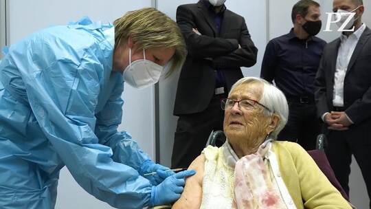 Im Video: 100-Jährige erhält erste Impfung im Kreisimpfzentrum in Mönsheim