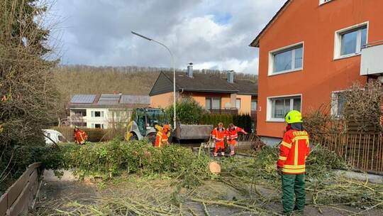 Aufräumarbeiten nach Sturm "Lolita": Baum stürzt in Niefern auf Haus