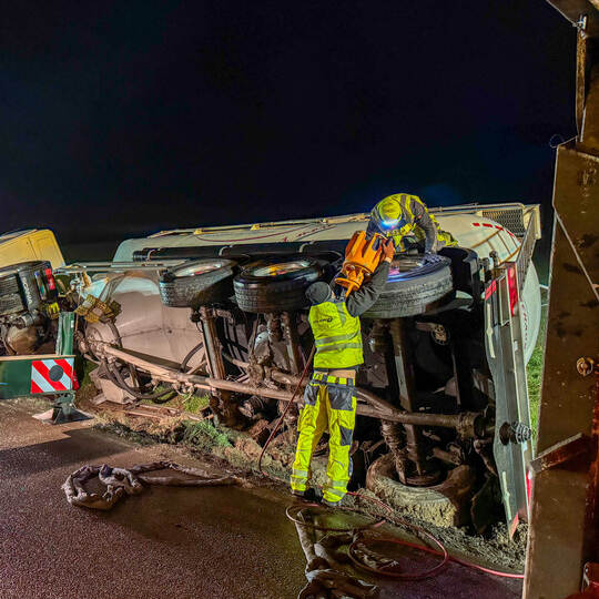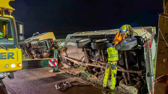 Region23 Tonnen schwerer Lastwagen kippt in Graben: Bergung bei Königsbach-Stein gestaltet sich schwierig