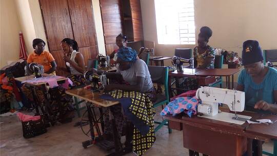 Die erste Station in Sindou war das fertiggestellte neue Nähzentrum, die vorherige Unterkunft war zu klein geworden. Es war schön, zu sehen, wie 15 Mädchen und Frauen eine dreijährige Lehre zur Schneiderin machen. Das Gebäude – nun auch mit sanitären Anlagen – ist super und bietet Möglichkeiten für noch mehr Ausbildungsplätze, vorausgesetzt, dass eine zweite Fachfrau gefunden wird, die wir bezahlen können.