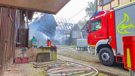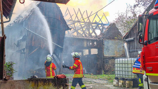 In Bildern: Feuerwehreinsatz in bei brennender Scheune Weiler