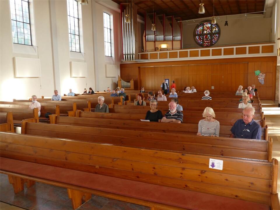 Auch dieses Thema war in der Kirche allgegenwärtig. Denn die geistliche Abendmusik und das Kinderorgelkonzert werden nach strengen Regeln des Hygieneschutzkonzepts der evangelischen Paulusgemeinde organisiert. Mit erforderlichem Mindestabstand hat es in der Pauluskirche 52 Plätze, eine Mund-Nasendeckung ist ebenso Pflicht wie Desinfektion, Namen und Adressen werden im Eingangsbereich des Gotteshauses vorab notiert, das einzeln betreten und wieder verlassen wird.