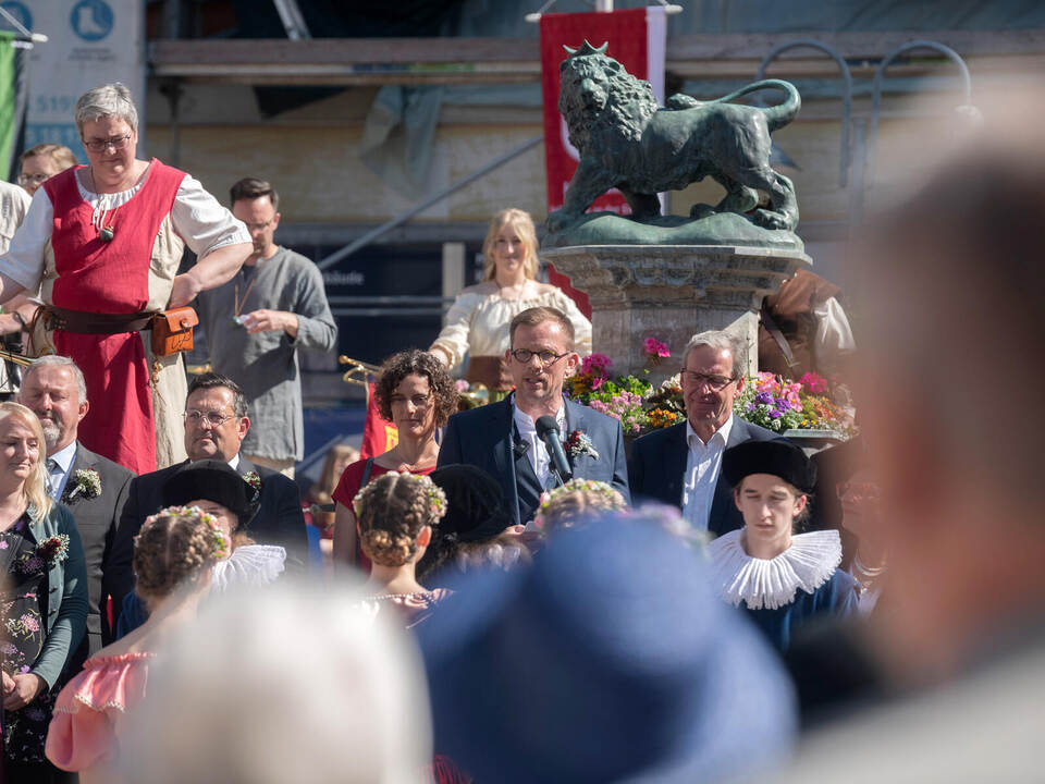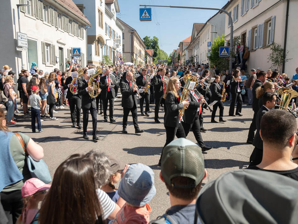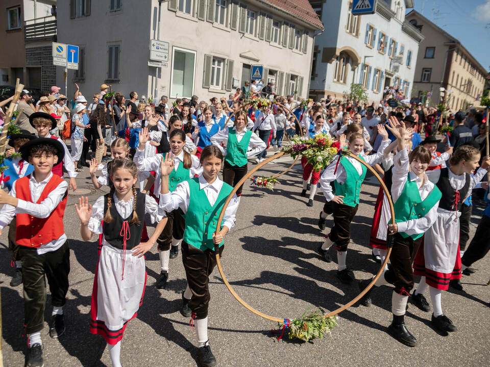 Auf dem Marktplatz eröffnete er mit Delegationen aus den Partnerstädten Köszeg und Jauernig den Tag des Festumzugs. 97 Gruppen und rund 2500 Teilnehmende zogen bei dem Umzug durch die Stadt. Das viertägige Vaihinger Maifest geht noch bis Dienstag. Mit einem großen Feuerwerk um 22.30 Uhr auf dem Festplatz Egelsee endet es.