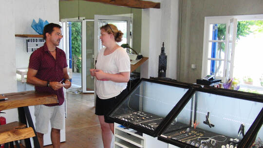 Die Idee war einfach: im Sommer eine Schmuckwerkstatt und Galerie in einem Urlaubsgebiet zu betreiben. Dort, wo sich die Menschen Zeit nehmen, sich zu entspannen und es möglich ist, in lockerer Atmosphäre den Menschen zu begegnen. „Wir wollen den Besuchern Einblicke in unsere Arbeit gewähren, transparent machen, wie Schmuck hergestellt wird und wie sich Einzelstücke von Massenware unterscheiden“ betont Alex, der lobende Worte für seine Hobby-Goldschmiede nach den Urlaubsseminaren findet. „Es ist einfach schön, zu sehen, welche Freude unsere Gäste haben, wenn sie ihr eigenes Schmuckstück nach getaner Arbeit in Händen halten.