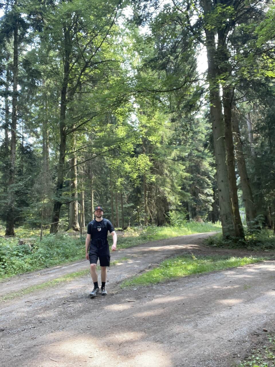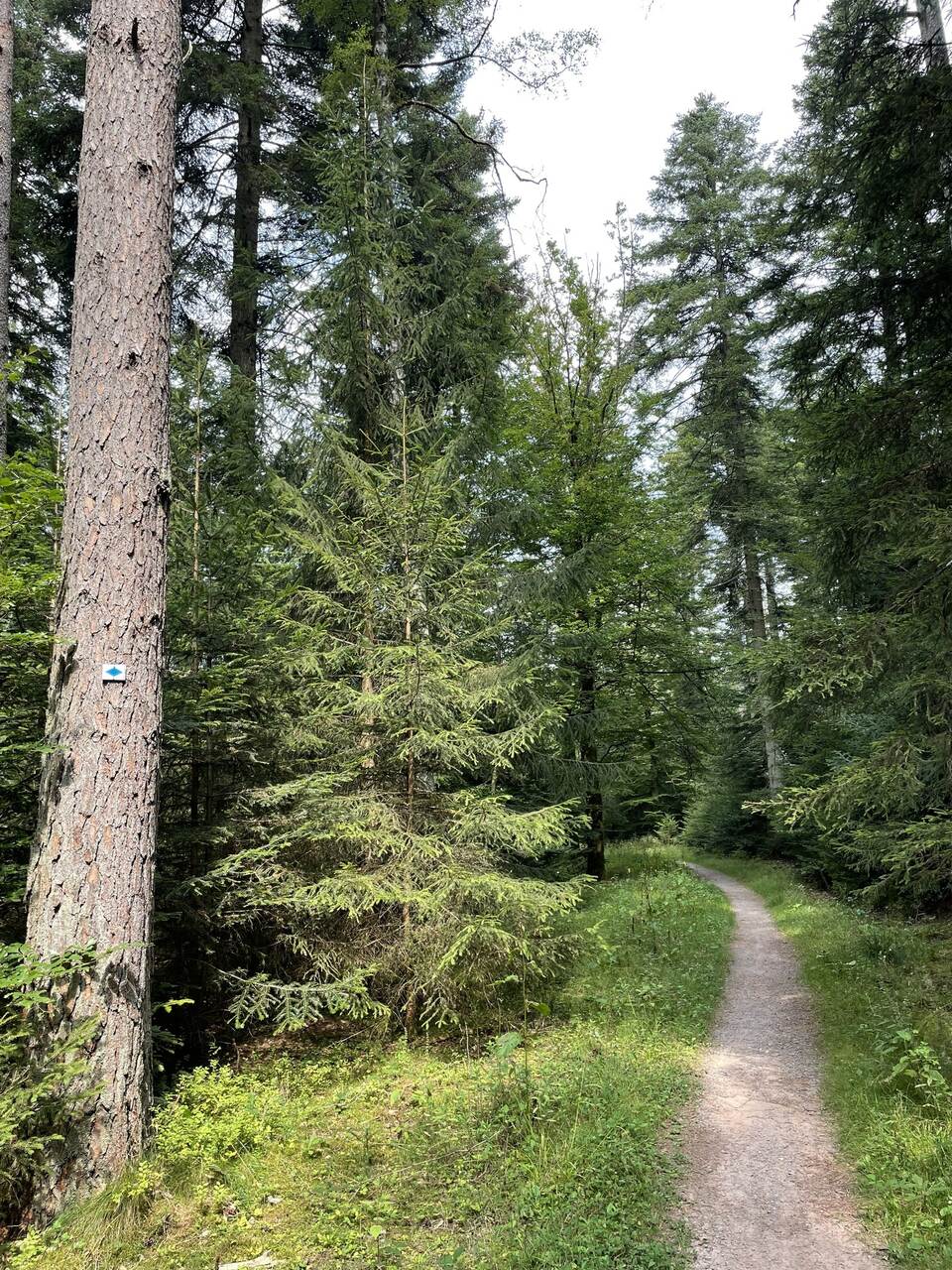 Nach der Monbachschlucht geht es weiter nach Schellbronn. Ein paar Kilometer führt mich die Strecke durch den Wald. Jetzt habe ich den Weg wieder für mich alleine. Ganz so spektakulär wie noch vor wenigen Minuten ist es aber nicht mehr. Dafür anstrengender, es geht wieder bergauf. Im Neuhausener Ortsteil komme ich auch am Freizeitwellenbad vorbei. Eigentlich das perfekte Wetter, um sich kurz im Wasser abzukühlen. Nur die Badehose fehlt.