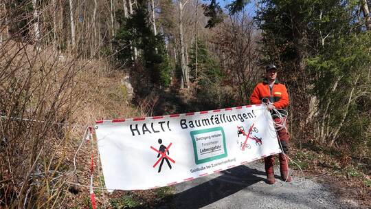 Gestern um die Mittagszeit konnte Matthias Mössinger vom Waldarbeiter-Team die Absperrung abhängen. Doch noch ist die Freude nicht ganz ungetrübt. „Die 700 Meter lange Strecke konnte in der kurzen Zeit nur notdürftig gerichtet werden“, so Wacker. Nach Ostern werde an dem Wanderweg wieder gearbeitet. Dabei könne es zu Beeinträchtigungen und auch zu kurzzeitigen Sperrungen kommen.