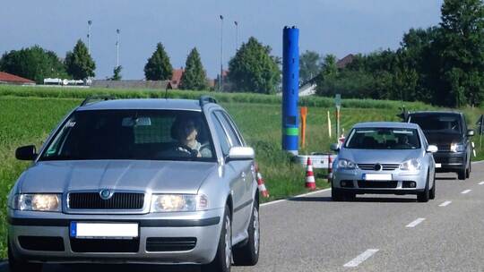 Bei der Arbeit der Firma Toll Collect denkt man noch in erster Linie an die Autobahnen. Ab 1. Juli wird die Maut für schwere Lastwagen auf alle Bundesstraßen ausgeweitet. Die Vorbereitungen dazu sind entsprechend in vollem Gange – und sorgten jetzt auch an der B 294 bei Bauschlott für Aufsehen.