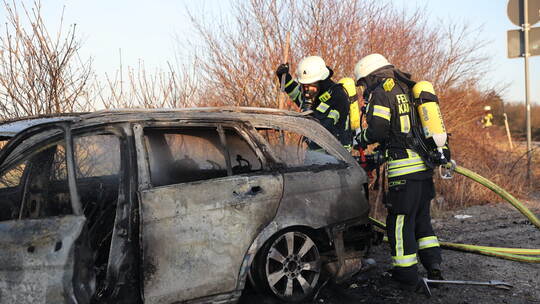 Die alarmierte Feuerwehr traf schnell am Einsatzort ein und konnte den Brand bis 17.30 Uhr löschen. Trotz der raschen Reaktion brannte das Fahrzeug jedoch komplett aus.