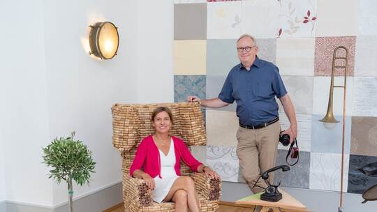Wie aus diesem mit ein bisschen Fantasie neue Dinge entstehen können, wissen die Leute also nicht erst seit dem modernen Umwelt-Trend „Upcycling“, bei dem aus Abfallprodukten wie Plastiktüten und Weinkorken Taschen und ganze Möbel entstehen. Den zeitgeschichtlichen Rundumblick über diese Improvisationskunst spannt die neue Ausstellung im Schloss Neuenbürg „Echt. Glanz. Stücke“ von Schlossherrin Jacqueline Maltzahn-Redling und dem Karlsbader Grafiker Michael Kowalik.