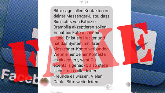 Fabrizio Brambilla scheint ein ganz fieser Zeitgenosse zu sein. Er schleicht sich bei Facebook-Usern in die Freundesliste ein und hackt dann die Accounts. Gnadenlos. Und keiner kann ihm das Handwerk legen. Das könnte man denken, wenn man allzu leichtgläubig jeder Meldung vertraut, die einen über den Facebook-Messenger erreicht. Aber wie so oft bei den GANZ-WICHTIG-Meldungen mit den zig !!!!!!! am Satzende: Alles nur Kettenbrief-Quatsch.