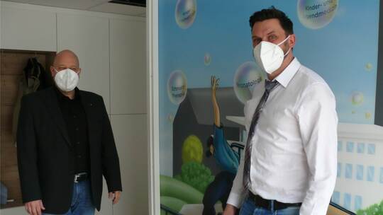 Die künstlerisch gestaltete Wand bietet aber auch mehrere Handysteckdosen für größere Patienten und auch für Patienten-WLan ist gesorgt. "Geparkt werden kann auch in der Tiefgarage", sagt Weisbrich, der von Seiten der Gemeinde die Praxisräume an den Kinderarzt vermietete.