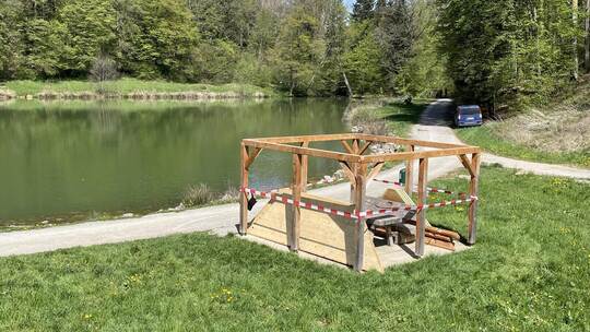 Der Pavillon am Paulinensee ist fast Geschichte: Der Tennisclub Mönsheim hat nun damit begonnen, die überdachte