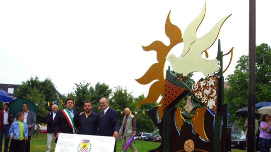 Bei der Übergabe 2002: Bürgermeister Wolfgang Oechsle (von rechts), Künstler Carmelo Navarra und San Biagios Bürgermeister Santo Sabella.