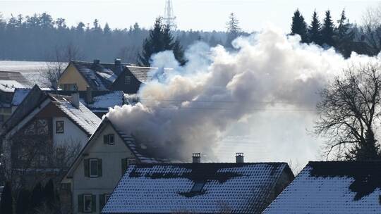 Dachstuhlbrand in Engelsbrand in eisiger Kälte gelöscht - Stromleitung im Weg