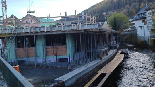 Bad Wildbad. Wo einst bei der Postbrücke in Bad Wildbad das 2016 abgebrochene Hotel „Vier Jahreszeiten“ alias „Hotel Frey“ und ganz früher „Bahnhofhotel“ stand, wurde erst im Juli dieses Jahres die Baustelle eingerichtet und mit der Errichtung eines Mehrfamilienhauses begonnen. Wie damals berichtet, ist Bauherr die ausführende Firma Gutekunst Kern KG aus Enzklösterle.