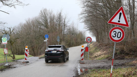 Zudem sei die Sperrung auch wichtig für die Straße selbst, so Oliver Müller, Leiter des Straßenverkehrs- und Ordnungsamts. Das Bankett der engen Straße sei abgefahren und senke sich ab. Diese sei der Menge an Fahrzeugen nicht gewachsen, die seit Montag vergangener Woche diese kleine Umleitung zwischen Nöttingen und Dietenhausen benutzen.
