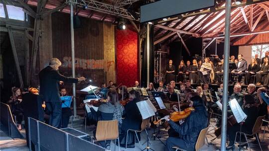 Die Zuhörer in der vollbesetzten „Offenen Halle“ am Wildbader Sportplatz zeigen sich vom Auftakt des Joseph-Haydn-Oratoriums „Die Schöpfung“