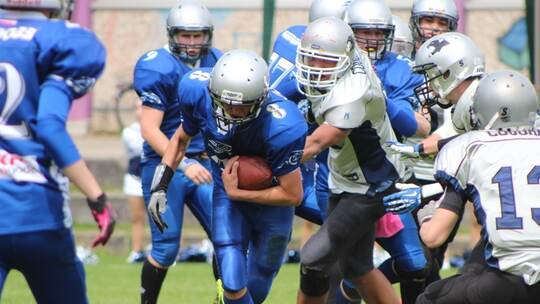 Die U13 der Wilddogs musste sich trotz couragierter Leistung den Greifs geschlagen geben. Obwohl die Pforzheimer mit Julian Hotz und Maximilian Pater den Ball gut bewegten, konnten Sie sich nicht mit einem Touchdown belohnen. So hatten die Wilddogs gegen drei lange Tochdown-Läufe der Karlsruher das Nachsehen.