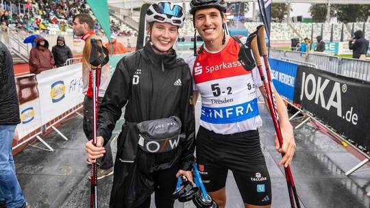 Dresden. Die sächsische Landeshauptstadt bot eine Traumkulisse für die Austragung des Dresdner City Biathlon. Das Einladungsrennen mit je zehn der weltbesten Athletinnen und Athleten fand seither in Wiesbaden statt und gehört seit Jahren zum attraktiven Sommerprogramm bei den Biathleten. Die Veranstaltung, welche mit Skirollern absolviert wurde, führte über 2,3 km Länge durch die Dresdner Innenstadt, vorbei an der Semperoper und über den Elbe-Uferweg zurück zum Schießstand im neu eröffneten Heinz-Steyer-Stadion.Ein Schömberger war auch mit dabei.