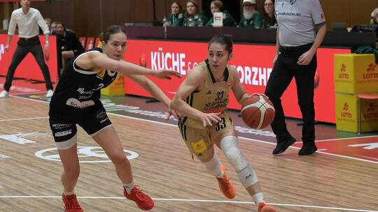 Osnabrück/Keltern.Die Sterne traten nach Rückkehr der länger verletzten Malia Fisher (die aber nur zu einem Kurzeinsatz kam) in voller Besetzung an, während die Panthers auf ihre Topscorerin Kristen Spolyar verzichten mussten – dafür aber gleich drei neue Spielerinnen aufboten: Neben Ex-Sterne-Akteurin Taylor Valladay, deren Vertrag in Keltern wenige Tage zuvor aufgelöst worden war, liefen auch die Serbin Milica Popovic und die Lettin Lina Loceniece erstmals für die Gastgeberinnen auf.