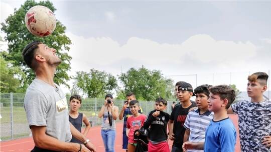 Spiele in der Bolzplatzliga für kleine Kicker, die keinem Verein angehören, sind an diesem Tag angesagt. Ein Integrations-Projekt und Fairplay – ohne Schiedsrichter. Dafür hat der 25-jährige Star die Schirmherrschaft übernommen. So hat auch er angefangen und als 14-Jähriger mit seinem Team die Bolzplatzliga gewonnen.