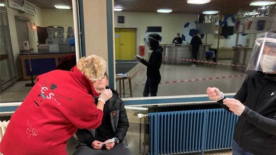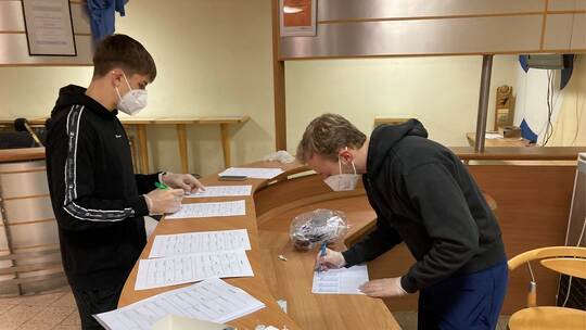 Sie treffen Vorbereitungen für die Durchführung von Corona-Schnelltests. Inklusive Trainer- und Betreuerstab müssen über 20 Tests pro Mannschaft durchgeführt werden und das Testergebnis muss vor Trainingsbeginn vorliegen. Nur mit negativem Testergebnis geht es dann für die Spieler in den Kabinentrakt.