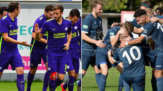 Wer jubelt am Ende des Derbys? Grund zum Jubeln hatten der FC Nöttingen (links) und der 1. CfR Pforzheim diese Saison schon oft. Nöttingen hat in der Oberliga acht Siege und ein Remis auf dem Konto, der CfR gewann zuletzt fünfmal in Folge.