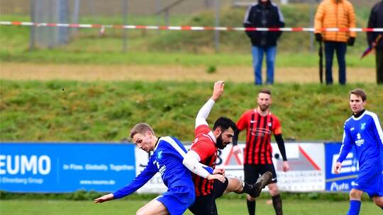 Singen – Bauschlott 2:3. Lange Gesichter im Singener Lager, nachdem Jonas Striegel in letzter Minute den Bauschlotter Siegtreffer markiert hatte. In der hart umkämpften Partie war Singen nach 24 Minuten in Führung gegangen. Nachdem Philipp Augenstein (27.) sowie Jonas Striegel (54.) die Führung gedreht hatten, glich Benjamin Thiel für Singen zum 2:2 aus. Ab der 77. Minute waren die Germanen nach einer Ampelkarte in Unterzahl.