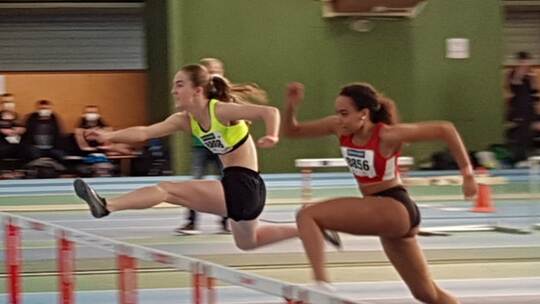 Ein Drama spielte sich bereits bei der ersten Disziplin des Tages, den 60 m Hürden ab. Favoritin Nina Schreiner (U20) siegte deutlich vor der Karlsruherin Anna Zittel. Kurz nach dem Lauf stellten die Kampfrichter fest, dass die erste Hürde 50 Zentimeter zu weit vom eigentlichen Platz gestellt war. So musste der Lauf wiederholt werden. Zwar verbesserte SVB-Athletin Schreiner ihre Zeit auf 9,01 Sekunden, Anna Zittel siegte jedoch diesmal mit hauchdünnem Vorsprung in 9,00 Sekunden.