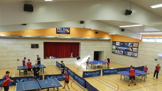 Schließlich hat der im Jahr 1975 gegründete Tischtennis-Club bereits 1980 mit viel Eigenleistungen an der Bürgerstraße die vereinseigene „Bocksbachhalle“ errichtet und das Gebäude in den letzten Jahren noch einmal umfangreich saniert. In diesem 18 mal 20 Meter großen Domizil mit einem Bühnentrakt sowie großzügigem Sanitär- und Umkleidebereich, kann an sechs Platten gleichzeitig trainiert und gespielt werden. Die „Bockbachhalle“ dient in Mutschelbach zugleich als Mehrzweckhalle, wird zudem von Grundschule und Kindergarten genutzt. „Es ist kein Geheimnis, dass die Kosten unseres Sportbetriebs neben den Mitgliedsbeiträgen und einem treuen Stamm an Sponsoren auch aus Mieteinnahmen gedeckt werden“, bekennt Vorsitzender Alexander Hofferer.