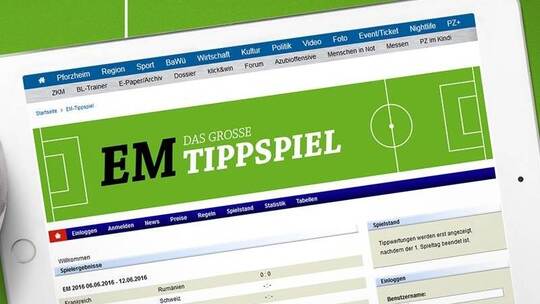 Sie müssen sich nur einmalig unter der Internet-Adresse tippspiel.pz-news.de regis-trieren. Oben in der Navigationsleiste finden Sie die „Anmeldung“. Nachdem Sie Ihre Kontaktdaten eingetragen haben, müssen Sie nur noch Ihre E-Mail-Adresse bestätigen und schon kann es losgehen. Bitte beachten Sie die Spielregeln, die Sie auf dieser Seite im Kasten nebenan nachlesen können.