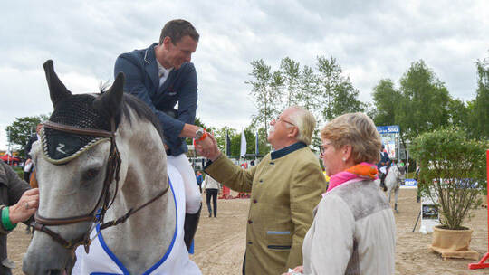 Auf dem zehn Jahre alten Schimmelwallach SL Brazonado war er in fehlerfreien 34.56 Sekunden der Schnellste und ließ den Baden-Württemberger Manfred Ege (Bitz) im Sattel des elfjährigen Westfalenwallachs Al Capone (0/35.56) genau eine Sekunde hinter sich.