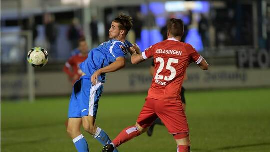 Pforzheim. Alles war vorbereitet für eine tolle Flutlicht-Premiere im Brötzinger Tal. Beeindruckende Atmosphäre, klasse Stimmung. viele Zuschauer – nur das Ergebnis stimmte am Ende nicht. Der 1. CfR Pforzheim verlor gestern Abend vor rund 405 Zuschauern zum ersten Mal in dieser Saison ein Heimspiel. Gegen den 1. FC Riealsingen-Arlen setzte es eine bittere 0:2 (0:0)-Pleite. Für die Gäste trafen Gianluca Serpa (60.) und Fabio Moreno Fell (74.).