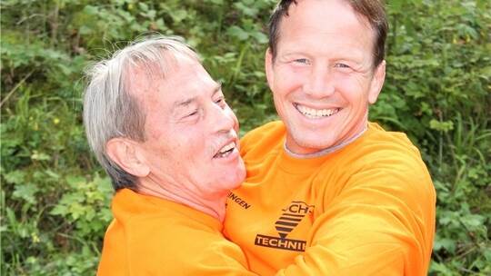 Freundschaftlicher Ringkampf: Der Vorsitzende des KSV Ispringen, Werner Koch (links), mit dem neue Trainer Alexander Leipold. Privat