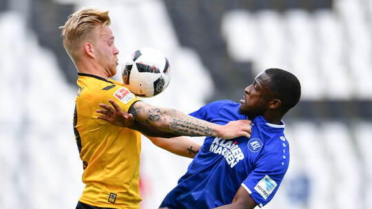 In einer turbulenten Partie ging Karlsruhe durch Oskar Zawada in Führung (7. Minute). Torwart Dirk Orlishausen parierte einen Foulelfmeter von Stefan Kutschke (12.) - doch Dresden drehte das Spiel noch in der ersten Hälfte. Erst traf Jannik Müller (12.), dann gelang Akaki Gogia ein Doppelpack (35./Foulelfmeter und 37.) binnen weniger Minuten. Müller machte das 4:1 (80.), ehe der KSC durch Zawada und einen von Gaetan Krebs verwandelten Handelfmeter noch Ergebniskosmetik betrieb (91.).