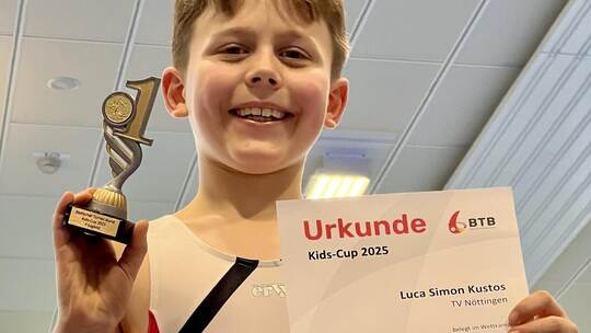Weingarten/Remchingen. Bei den badischen Nachwuchsmeisterschaften im turnerischen Mehrkampf sicherte sich Luca Kustos vom TV Nöttingen in einem spannenden Wettkampf nach sechs Disziplinen den Siegerpokal.