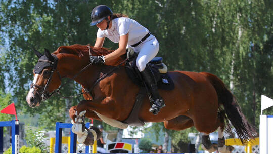 Mit Pferd Bibi Blocksberg wiederholt Steinhilper ihren Sieg im Springreiten