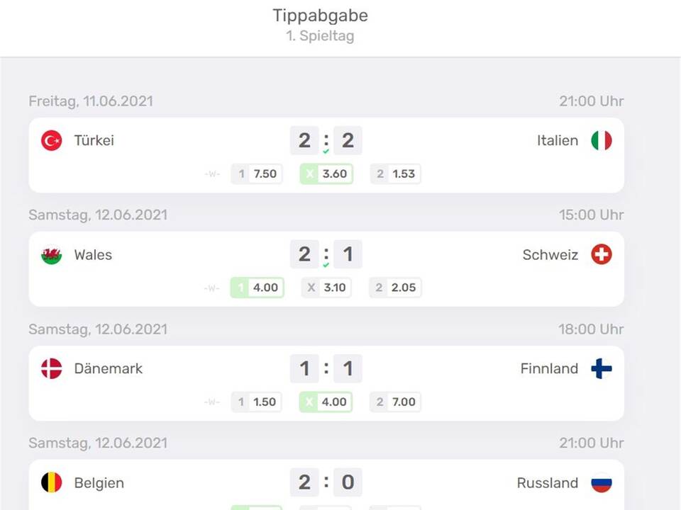 Sie haben das exakte Ergebnis vorhergesehen? Richtig stark. 2:0 getippt und das Endergebnis lautet 2:0 – Sie haben satte drei Punkte eingestrichen. Die drei Punkte gibt es natürlich auch, wenn man das richtige Endergebnis bei einem Unentschieden tippt.