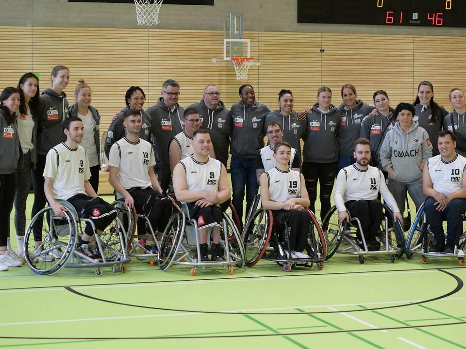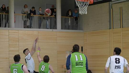 So gab es statt drei Spielen nur eine Begegnung zu sehen. Das Pforzheimer Team spielte in einer gut besuchten Halle gegen die Westpark Wheelys Ingolstadt. Unter den vielen Zuschauern befand sich auch das Frauen-Basketballteam der Rutronik Stars Keltern, die den PSC unterstützten.