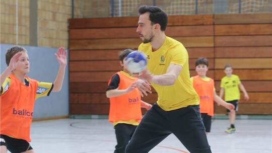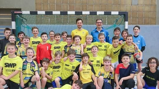 Die Trainingseinheit mit dem 123-fachen deutschen Nationalspieler (325 Tore) hatte eigentlich die B-Jugend der SG Pforzheim/Eutingen bei einem Turnier der Rhein-Neckar Löwen als Preis gewonnen. Die älteren SG-Talente überließen ihren „Gewinn“ aber großzügig den jüngeren Handballern. „Wir wollten auch, dass so viele Kinder wie möglich an dem Training teilnehmen“, sagte Ulf Meißner, der Coach der in diesem Jahr sehr erfolgreichen E-Jugend der SG. Mit dabei waren auch die D-Jugendlichen, die von Beate Lupus trainiert werden. Bei der E-Jugend erlebt die SG derzeit einen Boom und bräuchte dringend mehr Hallenzeiten, um dem Andrang an jungen Spielern Herr zu werden.