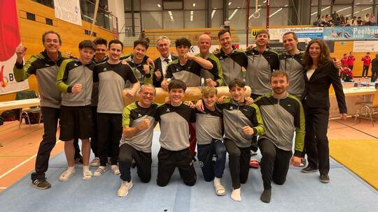 Remchingen/Kämpfelbach. Beim Ligafinale in der Oberliga männlich des Badischen Turner-Bundes in Bühl hat die Wettkampfgemeinschaft (WKG) Wilferdingen/Nöttingen ein tolles Resultat erzielt. Mit dem Mannschaftsergebnis von 266,75 Punkten war die Riege von Trainer Dirk Walterspacher das beste der sechs Teams und distanzierte auch den Meister Stadt-Turnverein Singen (259,65) und den Tabellenzweiten TSV Weingarten (266,25). Im Endklassement belegt die WKG nach sechs Wettkämpfen den dritten Platz. „Wir haben keine Fehler gemacht, ich musste keinen Joker setzen, es hat alles gepasst“, freut sich Walterspacher.