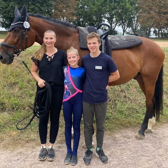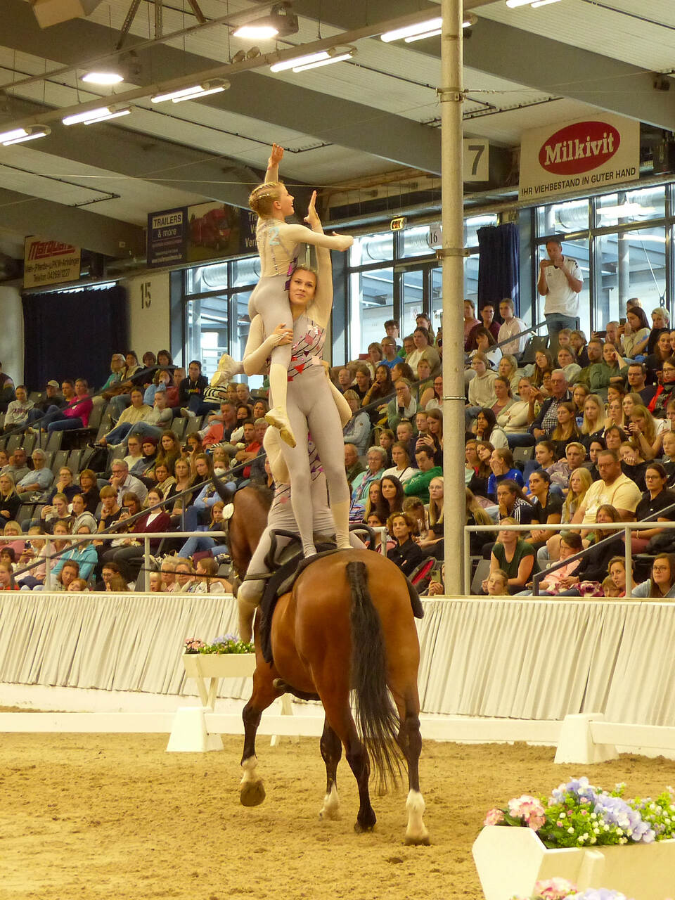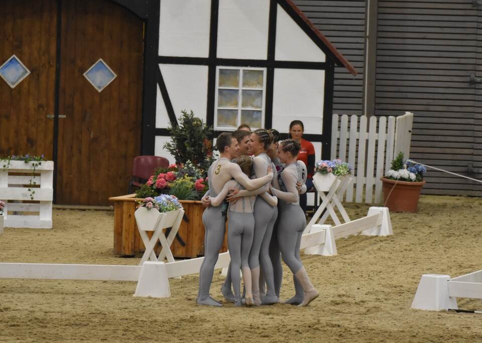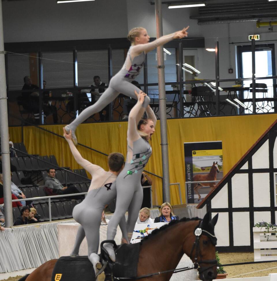 Besonders gut kam bei den Richtern und dem Publikum in der niedersächsischen Pferdehochburg Verden die Kür des Teams an: akrobatische Übungen, sauber und ausdrucksstark präsentiert zu rhythmischen Klängen. „Ich bin sehr zufrieden mit unserer Leistung, das harte Training hat sich wirklich gelohnt“, sagt Adelhelm. Das Team hatte sich intensiv mit bis zu fünf Trainingseinheiten in der Woche am Boden, am Turnpferd und am Pferd vorbereitet.