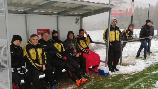 „Als ich daheim in Huchenfeld losgefahren bin, hat es schon geheißen, dass auf dem Platz in Schwarzenberg eine geschlossene Schneedecke liegt. Das Spiel der zweiten Mannschaft wurde abgesagt, aber wir wollten mit der Ersten unbedingt spielen“, erzählt SG-Trainer Peter Sieben. Schließlich waren seine Jungs heiß wie Frittenfett. Schon im Training waren sie nicht zu stoppen. Am Sonntag wollten sie unbedingt die Tabellenspitze stürmen.