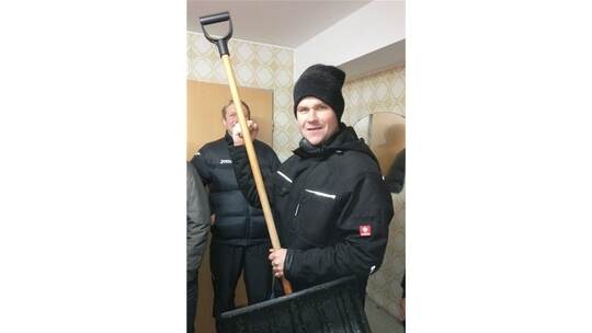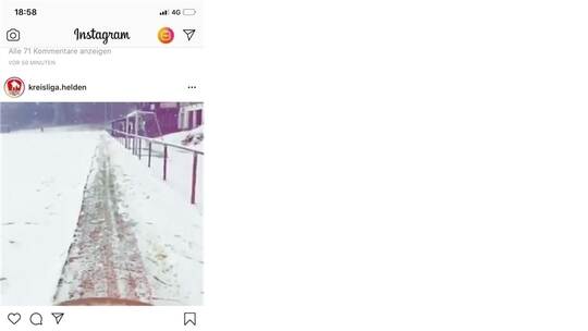 Also besorgten die Kicker kurzerhand zehn Schneeschaufeln. Auf Kommando von Spielleiter Nino Theurer schoben sie den Sechszehner frei. Plötzlich kam Robin Schleeh um die Ecke geknattert. Der verletzte Innenverteidiger nahm sich mit dem Mini-Traktor die Seitenaus- und Mittellinien vor.