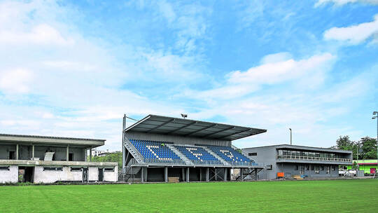 Erst wenn die Fenster im Funktionsgebäude installiert sind, kann der weitere Ausbau erfolgen. In dem Gebäude sind die Umkleidekabinen und Duschen für den Spielbetrieb untergebracht. Im Obergeschoss des Multi-Funktionstraktes soll es Verwaltungs- und Funktionsräume wie Fitnessraum, Schulungsraum und ein Geschäftszimmer geben. Die Räume sollen auch von andern Vereinen genutzt werden können.