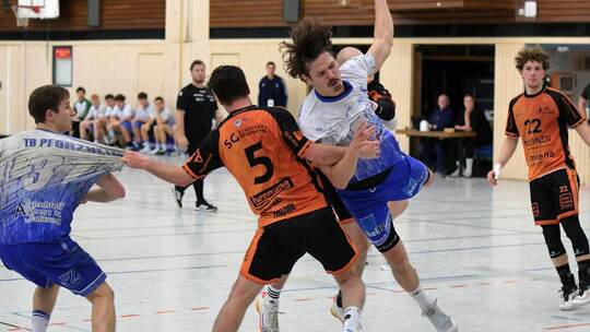 Pforzheim. In der Handball-Bezirksoberliga Schwarzwald-Rhein, Staffel 1, überraschte der TB Pforzheim mit einem 32:16-Sieg gegen Spitzenreiter SG Stutensee/Weingarten. Hochverdient, weil die Bregazzi-Schützlinge fast immer in Front lagen. Innerhalb einer geschlossenen Mannschaft traten Dennis Leicht, Sebastian Pfisterer und Mike Scheinmaier als sechsfache Torschützen auf.